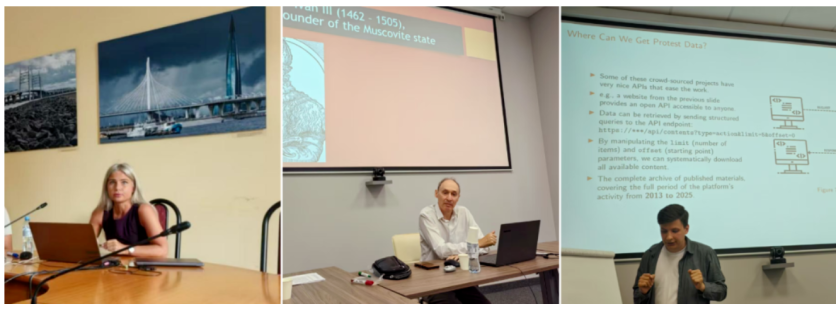2025年7月28日至8月10日,圣彼得堡欧洲大学2025年暑期学校在俄罗斯圣彼得堡举行,博士研究生庄博雯、李坤璘,2025届硕士毕业生郭见田,博士后柯研参加。本期暑期学校的主题为“欧亚语境中的俄罗斯”(Russia in the Eurasian Context),来自中国、意大利、亚美尼亚等国的学员共同参加,就俄罗斯外交政策、欧亚地区历史等议题进行研讨。