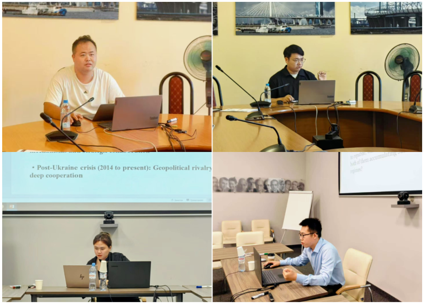 在学术展示环节,学员们分别展示了自己当前进行的研究项目,内容涉及欧亚互联互通、高加索地区外交等议题。柯研展示了人类命运共同体理念下中国的国际秩序观,李坤璘展示了“不结盟运动”与中立政策的历史演变、当代挑战及未来方向,庄博雯展示了建构主义视角下中国、俄罗斯与东盟国家三边关系的困境与重构,郭见田展示了国际石油公司在伊朗、沙特两国现代国家建构中的作用。