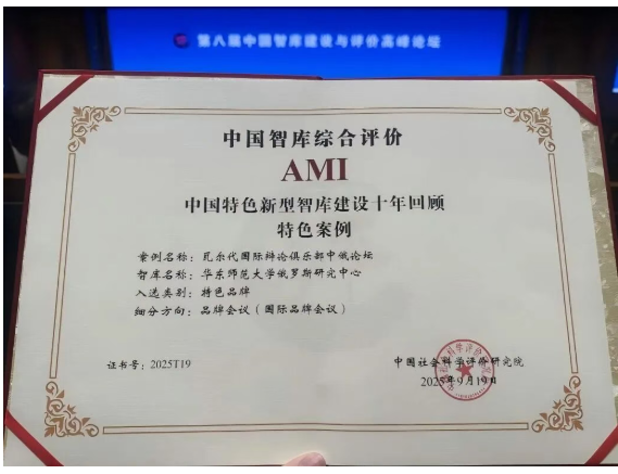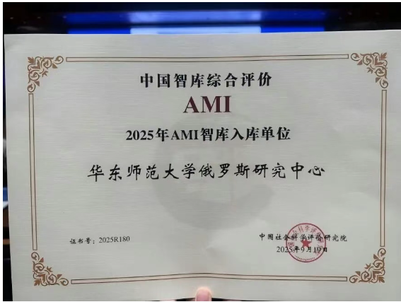 教育部人文社科重点研究基地--华东师范大学俄罗斯研究中心入选“2025年AMI智库入库单位”,中心长期坚持举办的品牌国际会议“瓦尔代国际辩论俱乐部中俄论坛”入选“中国特色新型智库建设十年回顾特色案例”。