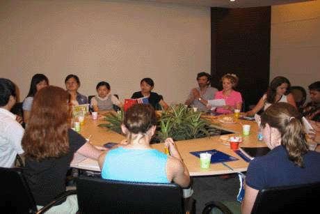 座谈讨论激烈,气氛融洽,双方对彼此的观点表示了极大的兴趣。会议就消费民族主义,有关特定商品的购买;人们对爱国歌曲和影视作品的反应;不同社会经济阶层的人对于爱国主义的认识;爱国主义与北京2008年奥运会;对在外国乒乓球队打球的中国人的看法;反日情绪和对毛泽东态度的代际差别;以及爱国主义教育等问题进行了交流和讨论。面对美国学生的提问,我院学生就中国爱国主义的现实问题给予详细而诚恳的回答,阐述了自己真实而独到的见解。并且针对美国国内的对华认识,与美方学生进行了积极的探讨,消除了一些误解和分歧。