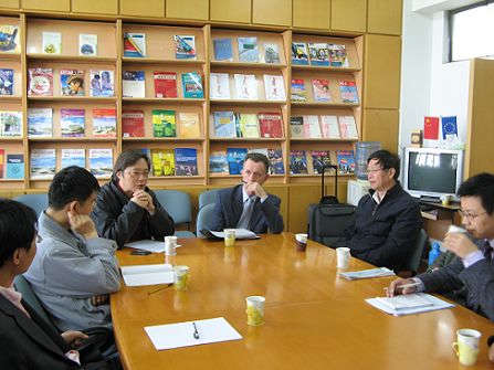 2009年4月28日,福特基金会驻中国首席代表费约翰(John Fitzgerald)到访华东师大国际关系与地区发展研究院、俄罗斯研究中心。这是费约翰先生此次上海之行的第三站。在短短一天半的上海行程中,费约翰先生分别在复旦大学、中国浦东干部学院和华东师大进行交流讲演。国关院院长、俄罗斯研究中心主任冯绍雷教授主持了整个会议。俄罗斯中心副主任刘军副教授、杨成副教授,以及部分国关院的老师出席了本次会谈。
