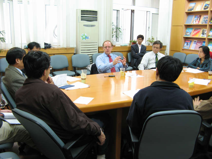 2008年10月29日,英国前驻俄国大使罗德里奇·莱恩爵士(Sir Roderic Lyne)来中心交流讲演。冯绍雷老师主持讲座,刘军、潘兴明、李承红、王铁军、姜睿等老师和部分研究生出席。