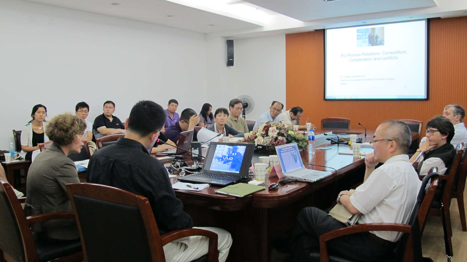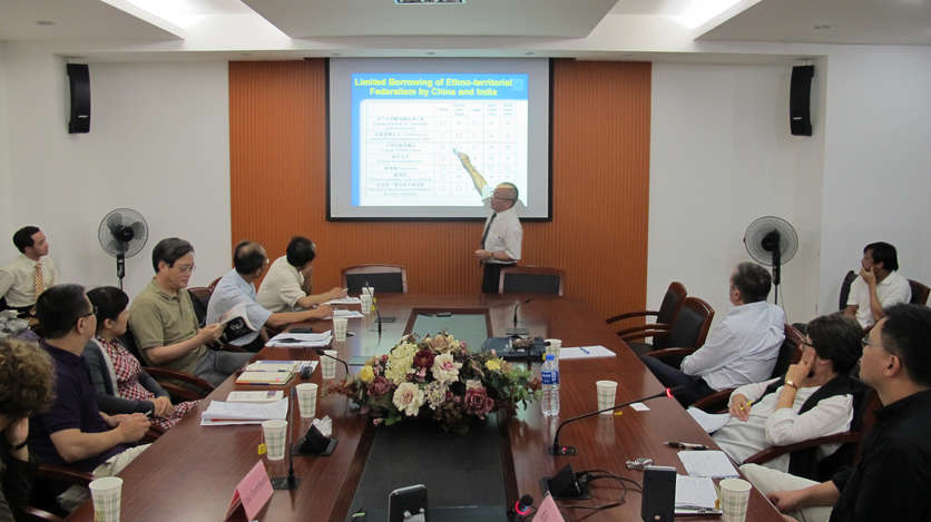 应俄罗斯研究中心邀请,2012年9月2日下午,IEECCS秘书长道亨巴赫、第一副主席松礼公孝分别就“欧俄关系:竞争、合作与冲突”(Relations between EU and Russia- cooperation and conflicts)、“民族-区域联邦主义的兴衰:俄罗斯、中国、印度的比较”(A Comparison of the Soviet Union (Russia), China, and India)举行了系列讲座。会议由张昕博士主持并翻译,俄罗斯研究中心冯绍雷、贝文力、杨成等老师和上海外国语大学汪宁教授、复旦大学刘军梅副教授、上海外国语大学副教授杨波等校外专家学者以及我院部分研究生参加了会议。