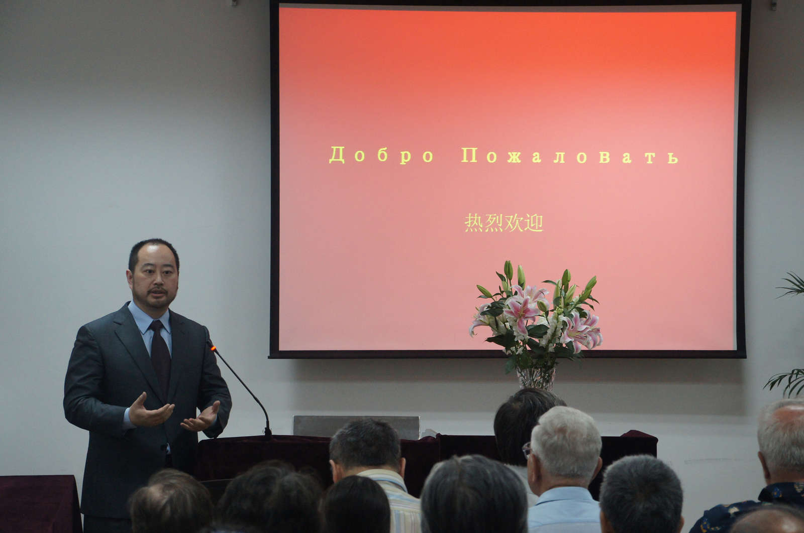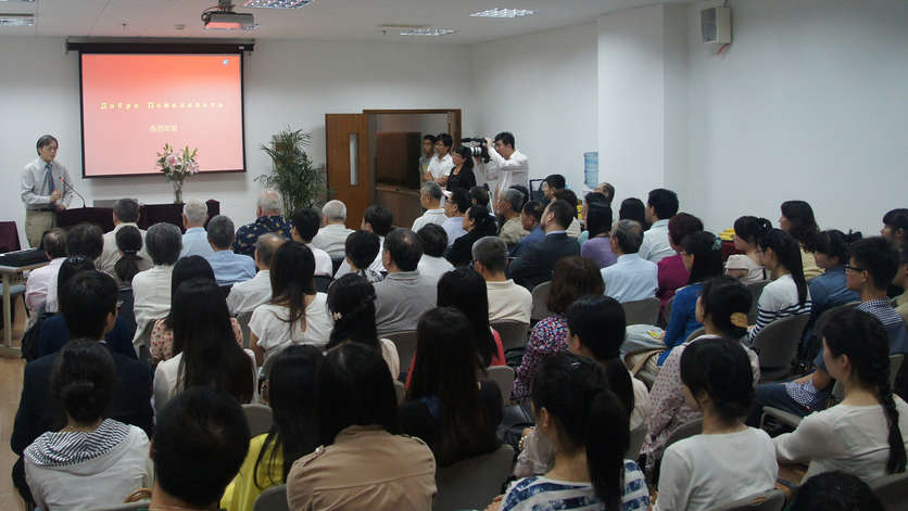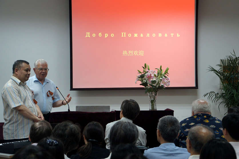 6月8日下午,苏联援华抗日志愿军后代祖辈战地故迹重访团访问我院。代表团成员有尼古拉·崔可夫(苏联元帅、“斯大林格勒保卫战”英雄、双重苏联英雄,名著“我与中国抗战”作者瓦西里·崔可夫的孙子)、叶甫根尼·奥巴佐夫(武汉大会战期牺牲的歼击机上尉康斯坦丁·奥巴佐夫之子)、伊万·巴格拉米杨(抗日战争初期苏军总参谋部远东战务署参谋总长、双重苏联英雄、苏联元帅巴格拉米杨之孙)、弗拉基米尔·巴特拉绍夫(军事医学教授,上校,苏联援华抗日志愿军军医顾问团后裔)等。来自我校、上海外国语大学、复旦大学的师生以及上海俄语爱好者俱乐部的成员参加了本次活动。