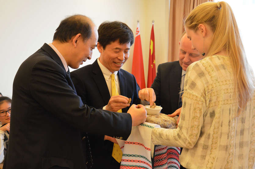 高炜在致辞中指出:今年是白俄罗斯历史文化年,作为华东师大和白俄罗斯驻沪总领馆2014年系列活动的开篇,以“热情好客的白俄罗斯”为主题的活动具有特别的意义。它将为我们打开一扇通往白俄罗斯的窗口,使我们进一步了解白俄罗斯历史和文化,感受白俄罗斯人民的热情好客。国之交在于民相亲,民相亲在于心相通。这样的主题活动正是能够使两国人民心心相印,能够进一步夯实民间友谊的基础。高炜表示,现在正是上海早春最美好的时节。中白教育文化交流合作的前景、我校与白高校交流合作的前景像春天一样的美好。马采利总领事表示:希望通过此次活动让更多中国朋友了解白俄罗斯的文化与人民。