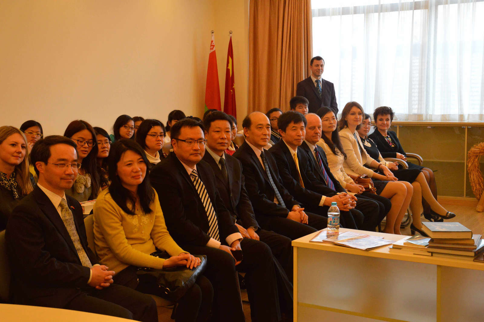 3月27日下午,“热情好客的白俄罗斯”主题活动在我校白俄罗斯研究中心举行。华东师大校长助理高炜、校国际交流处处长丁树哲、副主任王素斌、校国际教育中心主任助理金丽君、白俄罗斯驻沪总领事瓦列里•马采利和夫人、领事特里布什和夫人以及来自我校国关、外语、公管等学院的师生代表出席了活动。