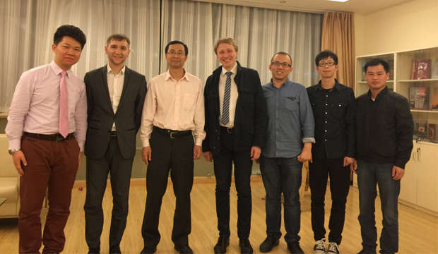 2015年4月29日晚,应我院副院长刘军教授的邀请,俄罗斯驻沪总领事馆两位副领事德米特里耶夫·德米特里(Mr.Dmitry Dmitriev)和谢维达(Mr. Alexey Tamara)来访我院,在我院白俄罗斯研究中心与我院博士研究生座谈交流,刘军教授主持本次座谈会。