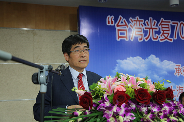 上海市政府台办巡视员李雷鸣在致辞中表示,“1945年日本对台湾殖民统治结束,中国恢复对台湾主权。这是中华民族结束近代民族屈辱的重要时刻,今天举行这个研讨会,重温历史,具有重要意义。”他在致辞时表示,“70年来,台湾与大陆命运相连,两岸同胞荣辱与共。7年 多来,在两岸双方坚持“九二共识”,反对“台独”的共同政治基础上,两岸关系走上了和平发展的康庄大道,取得了丰硕成果。当前,两岸关系又走到了一个新的 重要的十字路口,岛内部分人士拒不承认两岸同属一个中国,企图把台湾从中国分裂出去。”李雷鸣强调,不管台湾政局和国际形势如何变化,都不可能改变两岸同 属一个中国的历史事实和法律依据。两岸关系决不能走回头路,不能再让“台独”分裂势力破坏台海和平稳定。两岸合作、共谋发展,实现中华民族的伟大复兴,理 应成为两岸同胞的共同奋斗目标。