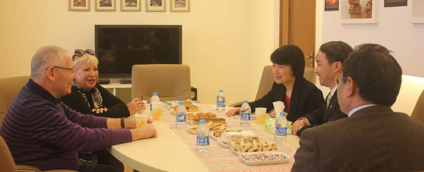 晚会前,梅兵副校长在国关院会见了俄罗斯艺术家。梅兵向客人介绍了我校在对俄研究、与俄开展人文交流合作方面所做的工作和取得的成果。茹尔宾表示,华东师大在对俄研究合作方面取得成绩令人印象深刻,并希望加强与我校各种形式的交流。